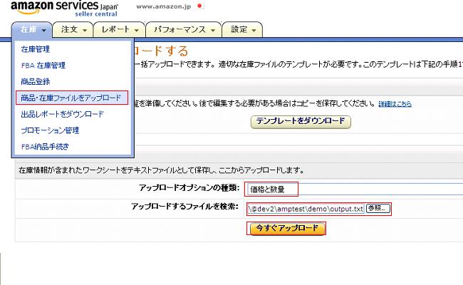 補足:レポートダウンロード、アップロード機能(AmazonMWS登録ユーザ限定)について