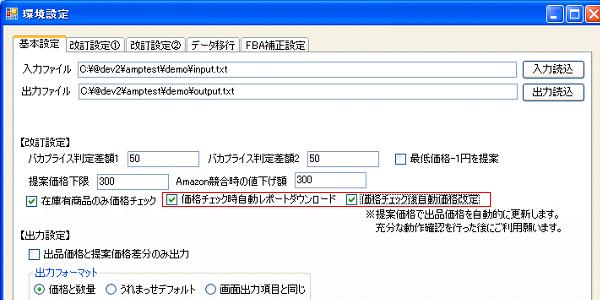 環境設定画面の「価格チェック時自動レポートダウンロード」にチェックを入れることで価格チェック時に
